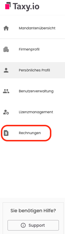 Um eine Rechnung zu öffnen und sie herunterzuladen, klicken Sie auf die jeweilige Rechnung in der Historie.